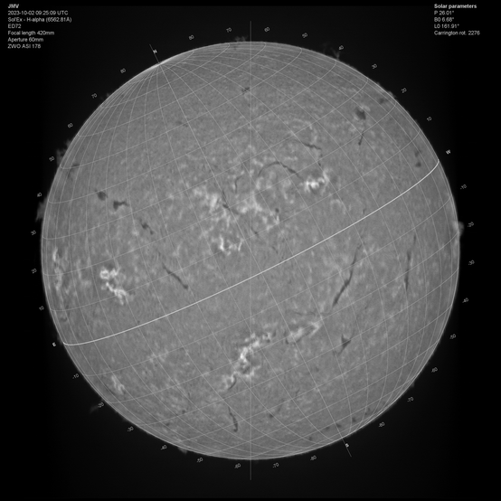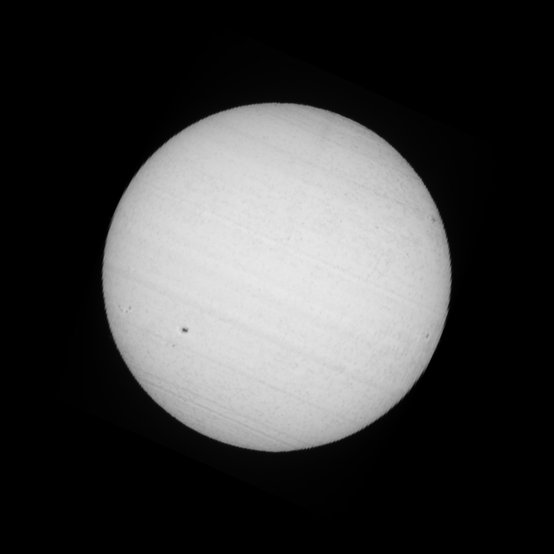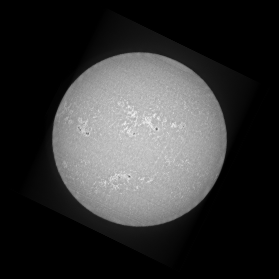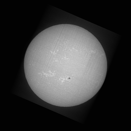 Divine surprise, ciel presque tout bleu ce matin ! Est-ce parce que le vent a tourné et vient maintenant du nord ? En tout cas une occasion à ne pas manquer après ces nombreux jours de grisaille, même si au final il y avait encore beaucoup de turbulence mais aussi unse photosphère constellée de taches.